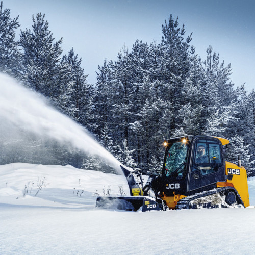 - Kolica i deflektor obloženi polimernim materijalom lako se podešavaju za usmjeravanje istovara snijega pomoću JCB-ovih višenamjenskih kontrola.