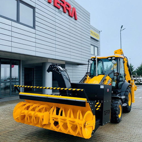Snjegomet JCB može bacati snijeg do 1,4 m zahvaljujući svojim hidrauličnim puhačima u dva stupnja.